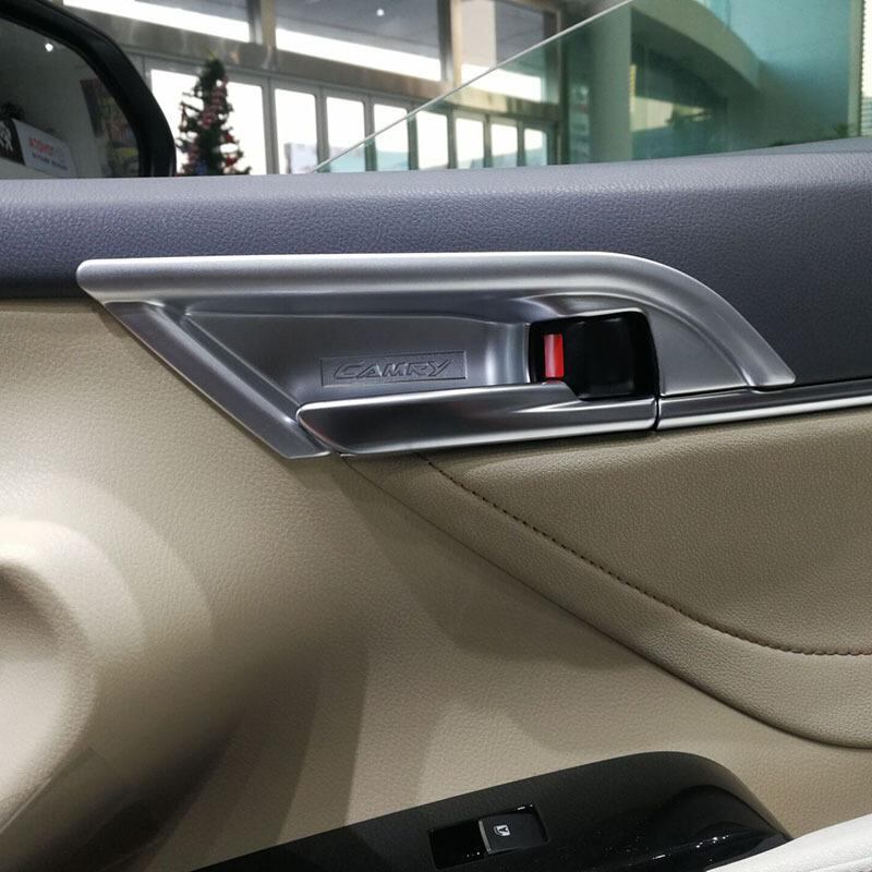 インナードアハンドルカバー 18系カムリ用 ドアノブプロテクター フレーム マットシルバー 艶消し銀 ABS樹脂製 傷防止 保護 車内アクセサリー カスタムパーツ ドレスアップ(x3) | lanui