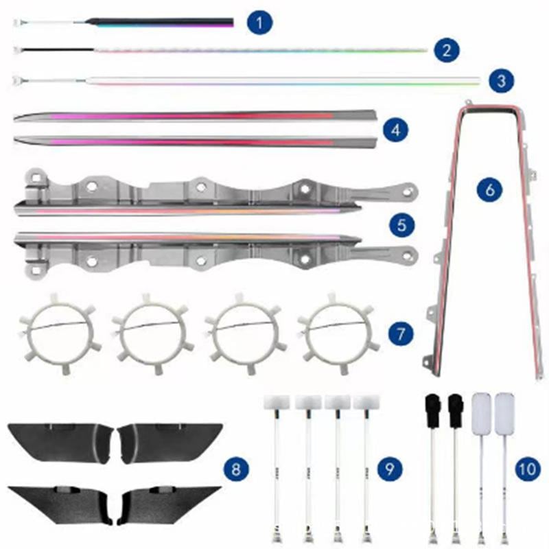 トヨタ9代目カムリ専用に設計されたLEDアクリル製アクセサリーです。車両の雰囲気を一層引き立てるカスタムパーツで、ヘッドライト部分に20灯、ホーンリング部分に4灯のLEDが美しく配置されています。日中のドレスアップから夜間の視認性向上まで、幅広く活躍するアイテムです。