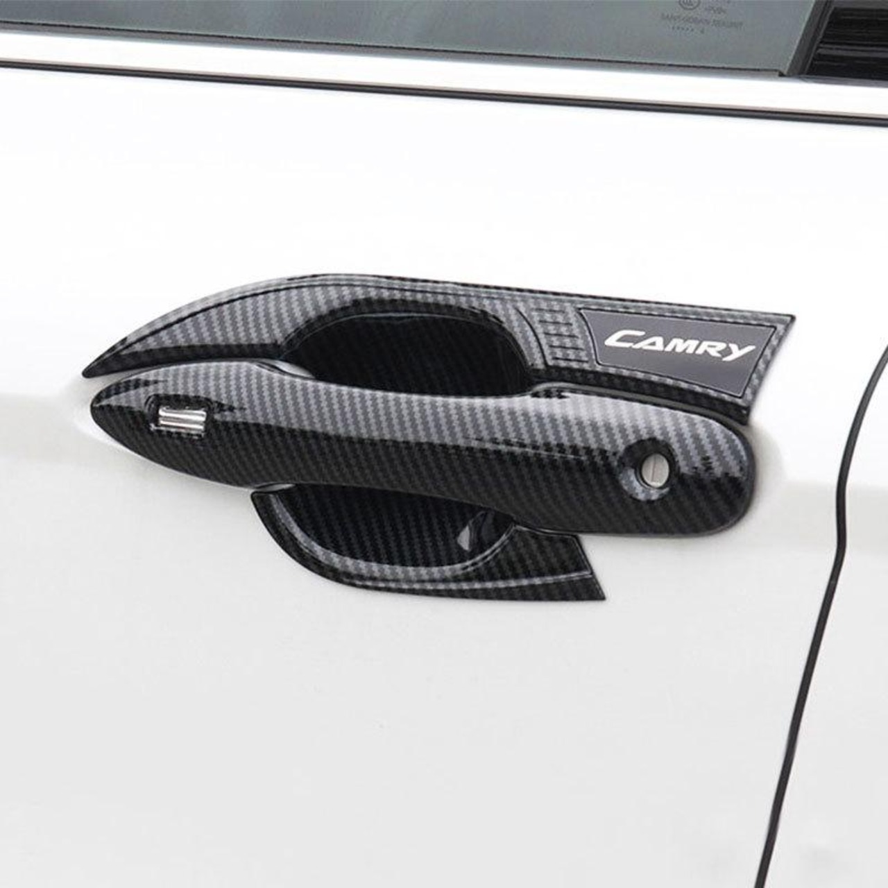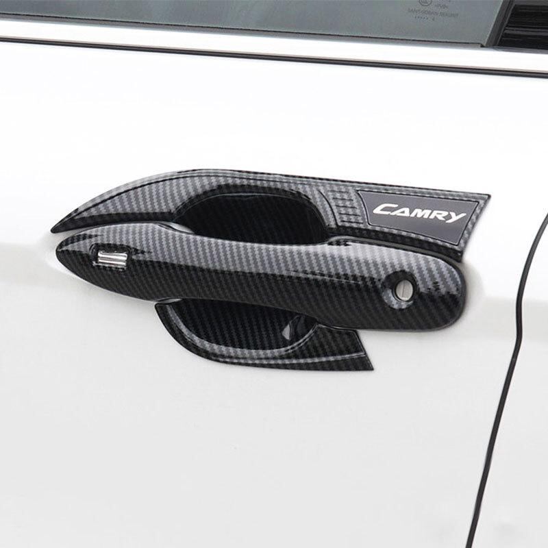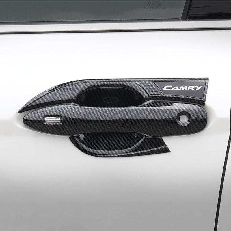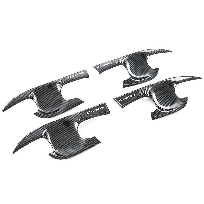 カーアクセサリー トヨタ カムリ 2018-2025年モデル ドアハンドル ドアカップ プロテクター 傷防止 ABS樹脂 外装 ドレスアップ カスタムパーツ カーボン調 ピアノブラック シルバー 4点セット | lanui
