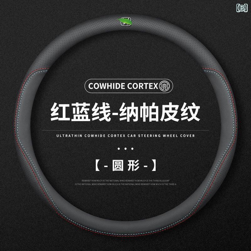 ステアリングカバー ホンダ ヴェゼル RV系 RU系 専用設計 本革 牛革 レザー ハンドルカバー 高級感 快適な握り心地 四季汎用 スポーツタイプ 円形 ブラックステッチ レッドブルーステッチ スエード調(x2) | lanui