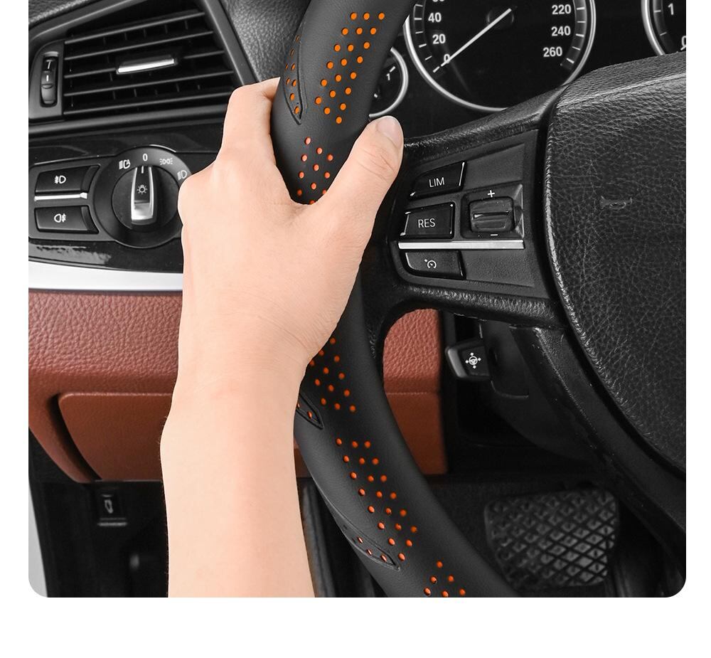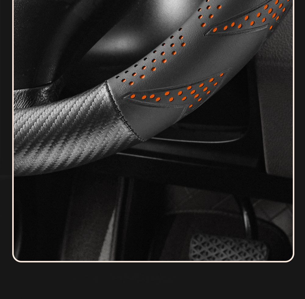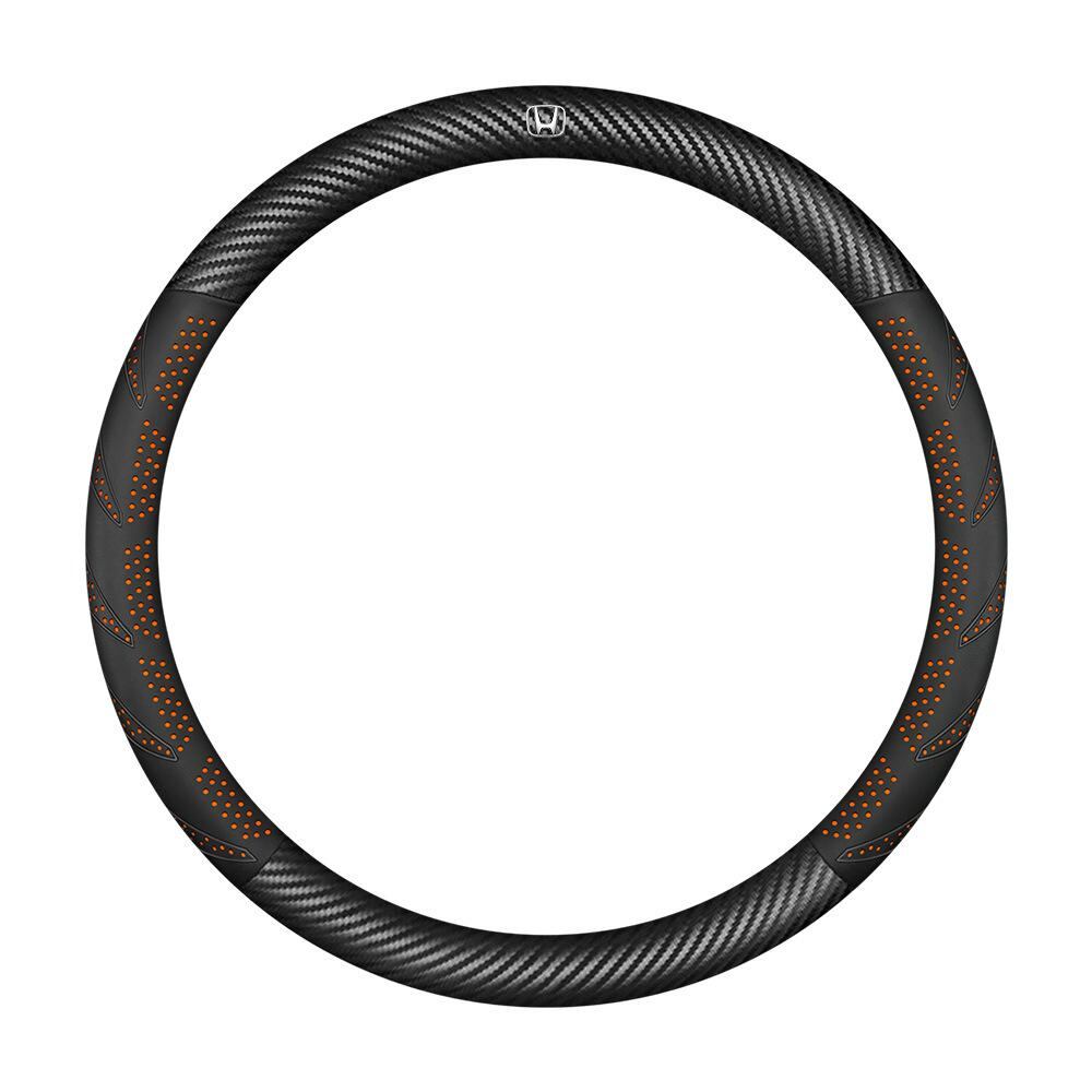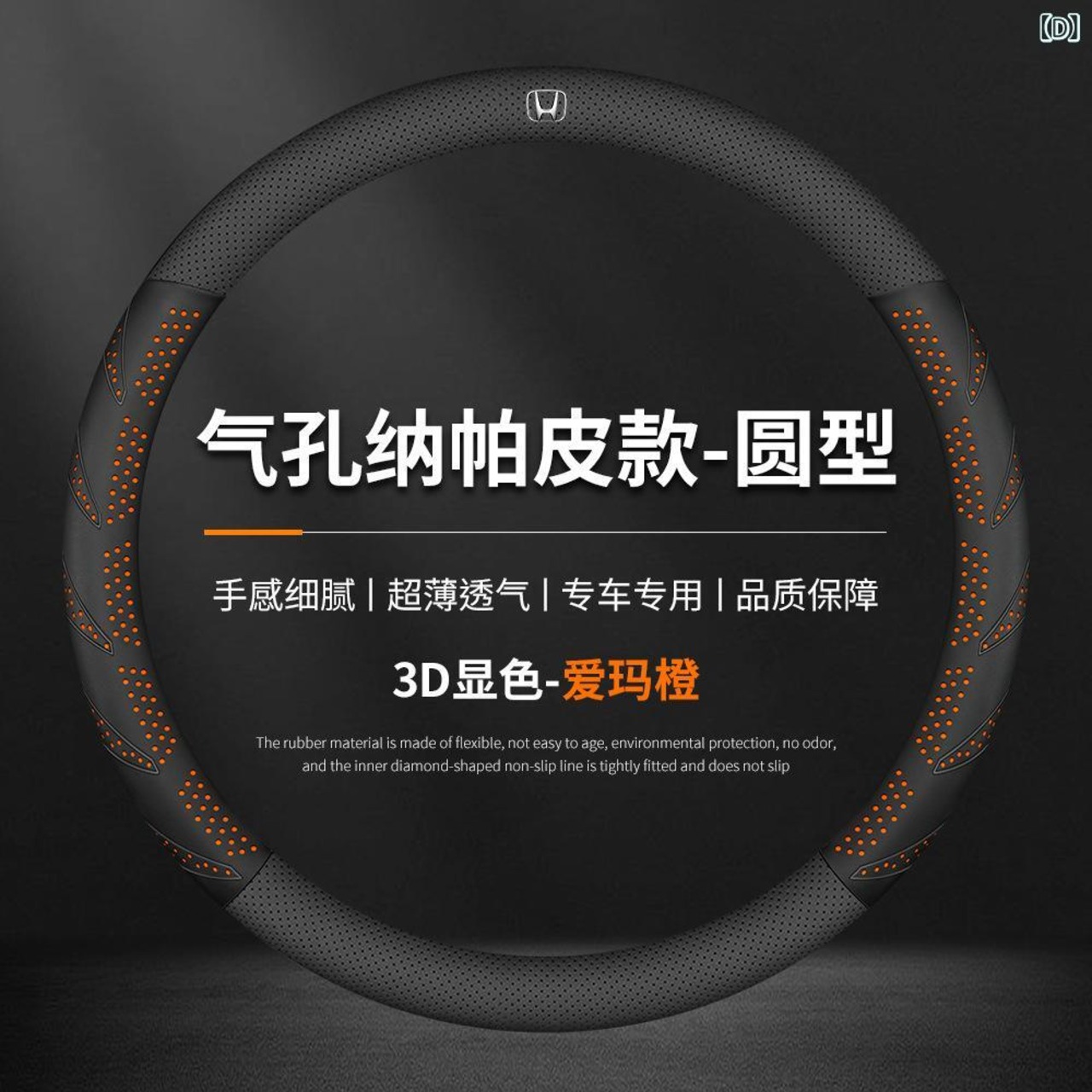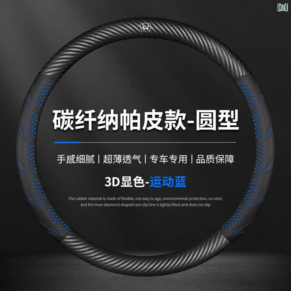 ハンドルカバー ホンダ車 汎用 アコード シビック CR-V ヴェゼル X-RV グレイス カーボン調 スエード パンチングレザー ナッパレザー オレンジ ブルー ホワイト スポーティー オールシーズン 直径38cm対応 | lanui