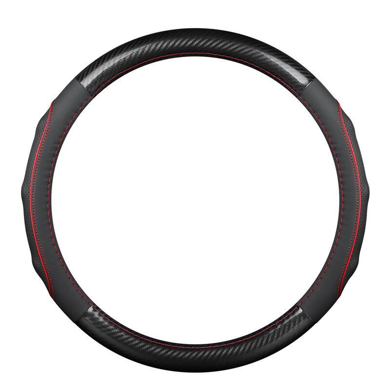 ステアリングカバー ハンドルカバー ホンダ アコード CR-V アヴァンシア オデッセイ エリシオン シビック ヴェゼル ブリーズ 用 本革 カーボン調 レザー D型 円形 スポーティー 赤ステッチ 黒ステッチ 青ステッチ オールシーズン 汎用 | lanui