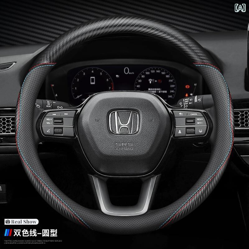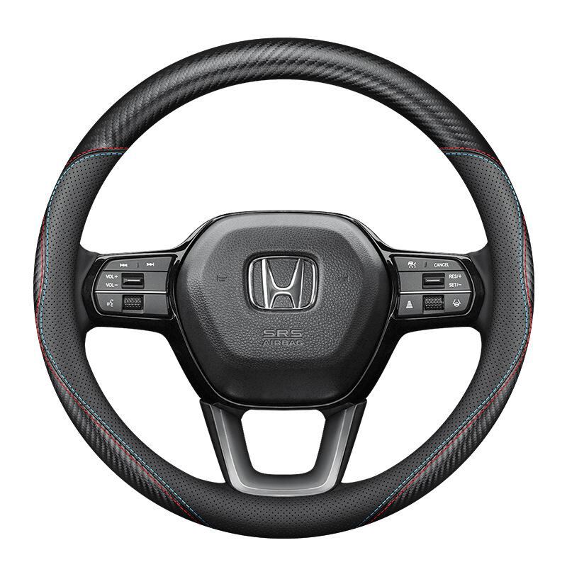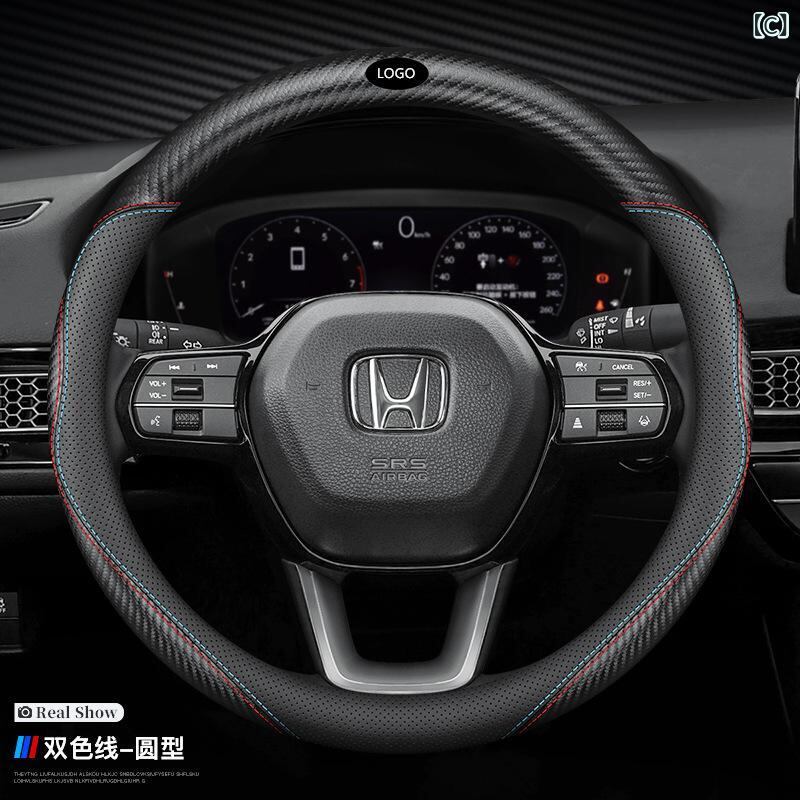 ハンドルカバー ホンダ アコード CR-V オデッセイ エリシオン ヴェゼル アヴァンシア ブリーズ カーボン調 ステアリングホイール用 ツートン スポーティー オールシーズン 車内ドレスアップ 38cm | lanui