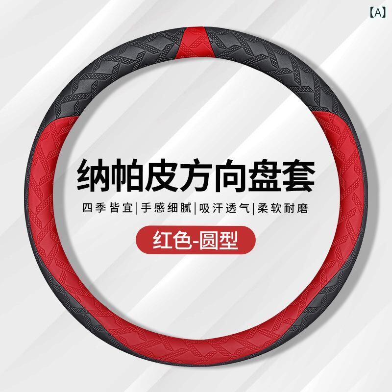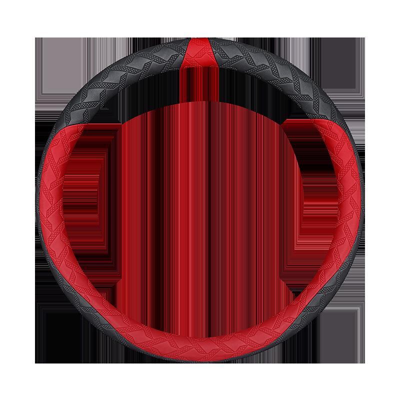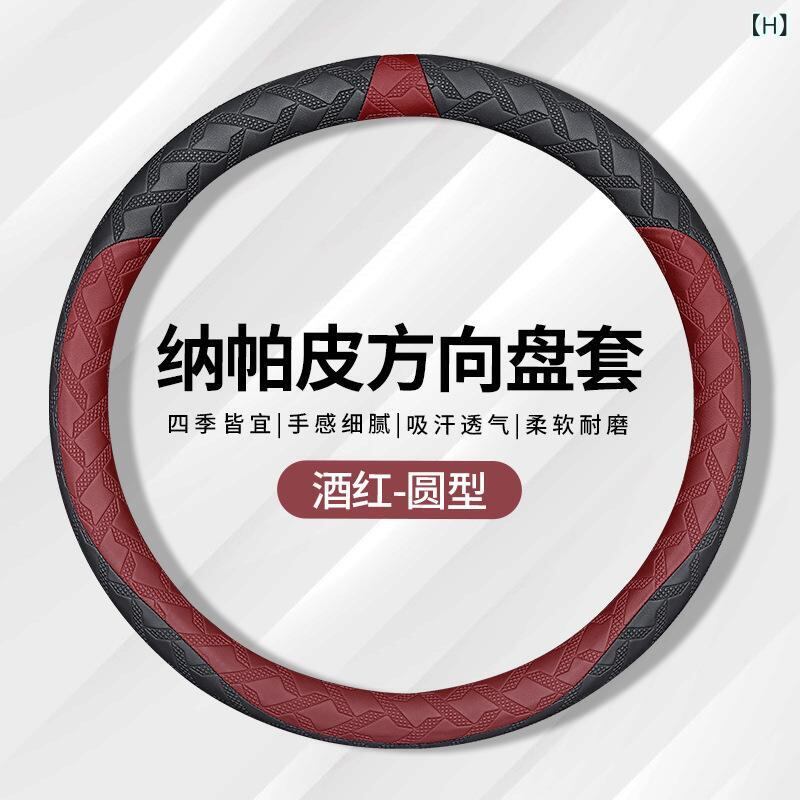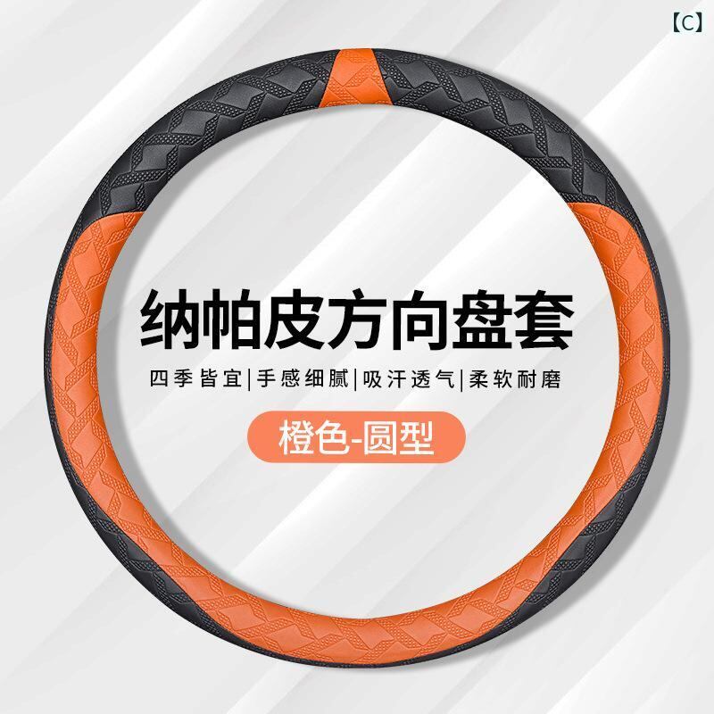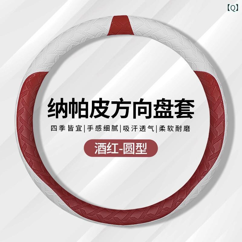 ハンドルカバー ホンダ車用 シビック アコード CR-V フィット ヴェゼル など対応 人工皮革 フェイクレザー 3Dエンボス スポーティ 丸型 オールシーズン 直径38cm ブラック レッド グレー ホワイト | lanui