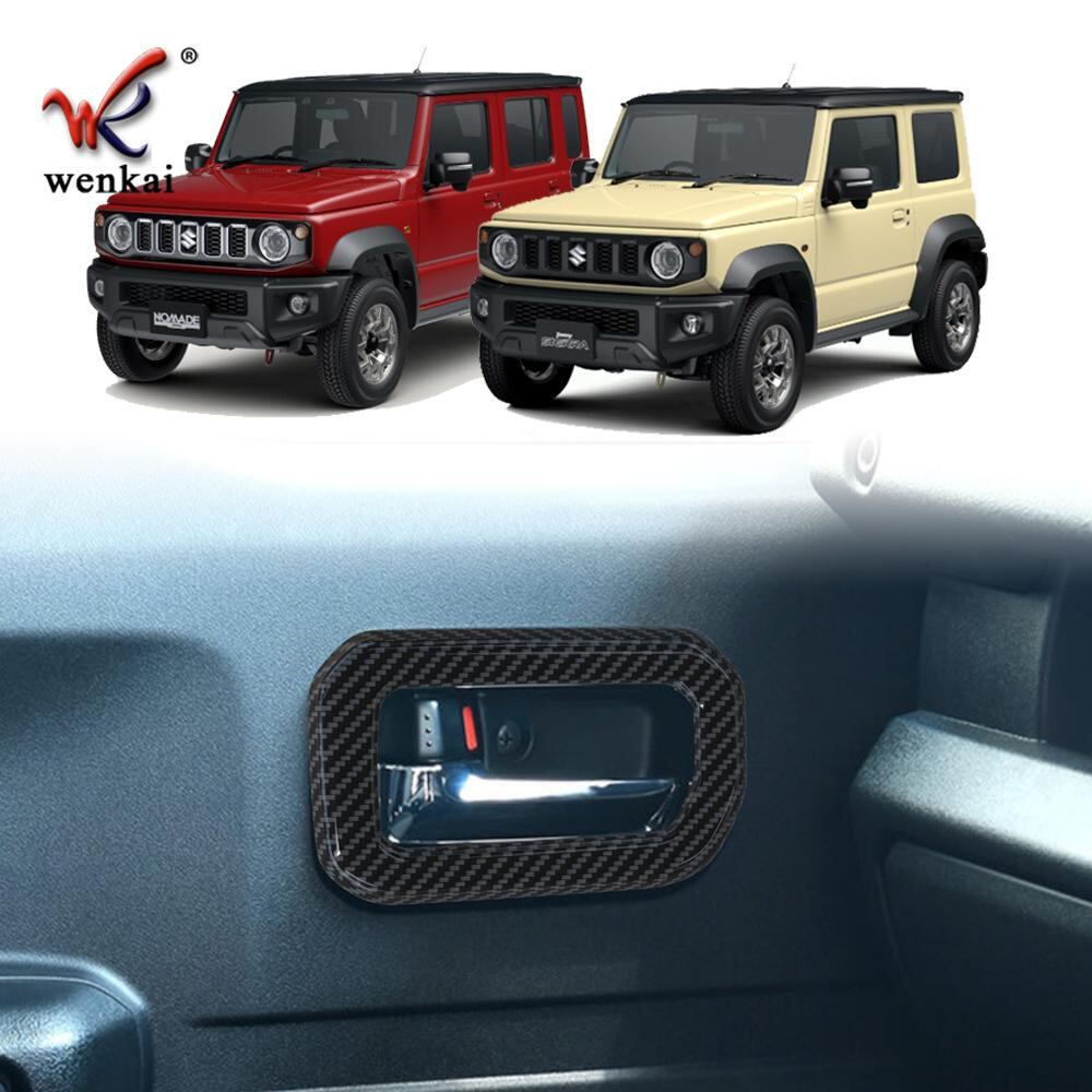 内装パーツ スズキ ジムニー JB64 JB74 19-25年モデル インナードア ドアボウル ドアハンドル カバー ガーニッシュ ABS樹脂 ピアノブラック カーボン調 専用 ドレスアップ 傷防止 カスタムパーツ | lanui