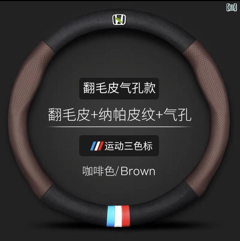 ハンドルカバー ホンダ シビック アコード ヴェゼル フィット CR-V 対応 ステアリングカバー フェイクレザー 合皮 滑り止め グリップ感 汚れ防止 直径38cm 汎用 スポーティ 円形デザイン ブラック ブラウン レッド | lanui