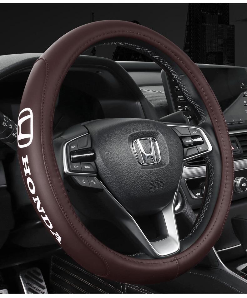 ハンドルカバー ホンダ 新型シビック アコード フィット クライザー ジェイド オデッセイ ヴェゼル CR-V アヴァンシア 車種専用設計 合成皮革 PUレザー 38cm オールシーズン 傷防止 汚れ防止 滑り止め 内装ドレスアップ ブラック レッドステ